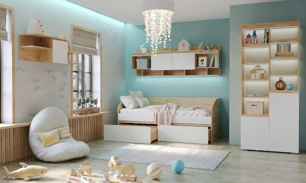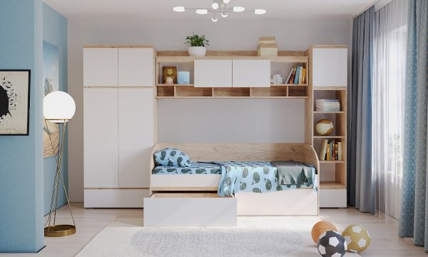 Крепится к стене через навесные элементы. Для удобства открывания и удержания фасада в открытом положении устанавливаются газлифты. Применение интегрированной ручки на фасадах делает модель стильной и безопасной – дверцы открываются за профилированные выступы. Фасады обработаны кромкой 1 мм.