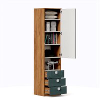 - Внизу 3 ящика неполного выдвижения. Размер фасада ящика 496х183 мм