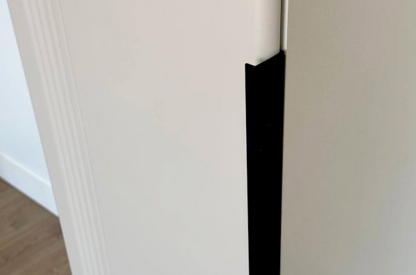 Особое внимание стоит уделить фрезеровке фасадов, которая придаёт шкафу изысканный и неповторимый вид. Длинные пластиковые ручки гармонично дополняют общий стиль шкафа.