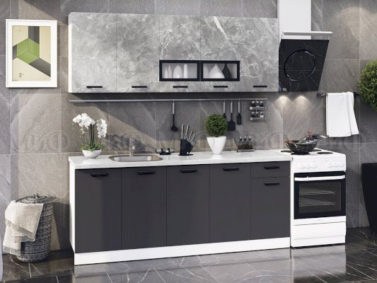Модульная кухня Рио Мрамор глянец/Графит глянец (Миф) – товар доступен к покупке в интернет-магазине lipeckiy-dommebeli.ru. Цена – 38 930 руб. без учета доставки. Стоимость дополнительных услуг и сроки получения мебели уточняйте у менеджера. Возможен безналичный расчет, оплата по карте на сайте.